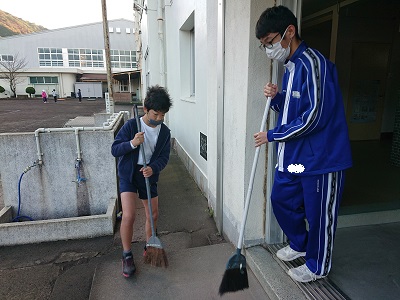 委員会活動の様子です。今日は小中の学習環境委員さんが玄関掃除を丁寧に行っています。いつもありがとうございます。