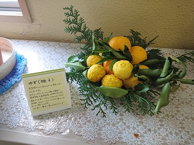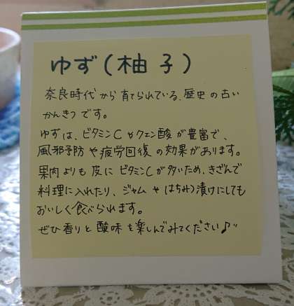児童生徒支援員さんが用意したゆずに、栄養教諭さんがポップをしてくれました。