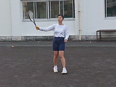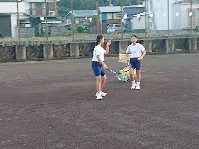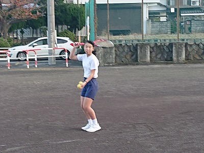 女子ソフトテニス部の朝練習の様子です。みんな目標に向かって頑張っています。