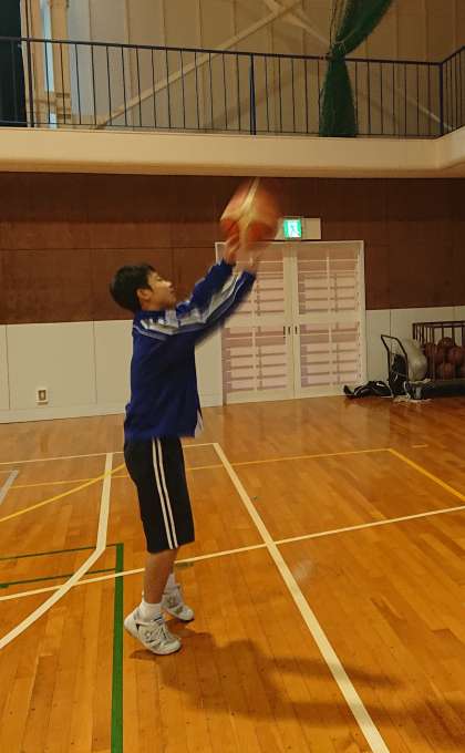 バスケットボール部の朝練習の様子です。「正確なシュート」を目指し、日々練習を重ねています。