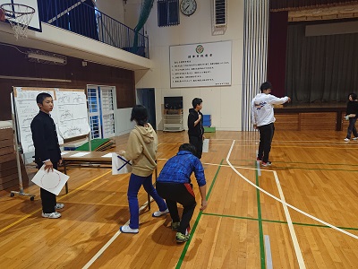 本日開催予定の「幼保小中合同集会」や「生徒主催球技大会」の生徒会行事に向け、生徒会役員が準備をしています。