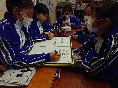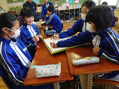 1年生は学級活動の時間において、SNSなどを使ったネットモラルについてクラスで話し合いました。また、時間の終わりにはSNSクラスルールをみんなで作りました。