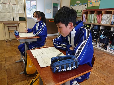 1年生は学級活動の時間において、冬休みの生活について、しおりを使いながら確認をしました。
