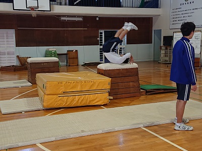 3年生は体育で「器械運動(マット・跳び箱)」に取り組んでいました。自分の課題を解決するために、それぞれが練習方法を工夫しながら取り組んでいました。