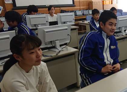 2年生は英語でスキットを行っています。先日ペアで考えたスキットをビデオ撮りしました。今日はそれを再生し、みんなで見合いました。