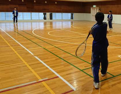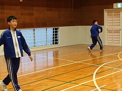 ソフトテニス部の朝練習の様子です。今朝は体育館で打ち込みを行いました。