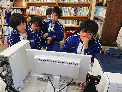 昼休みの様子です。生徒は図書館を利用して、興味のある本を選んだり、読んだりしていました。