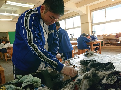 2年生は「刷って出会う美しさ」という単元を学習しています。版の特徴を表現に生かしながら制作活動を行いました。