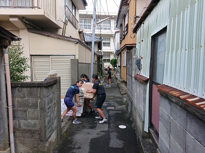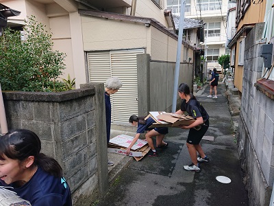 ソフトテニス部が練習をしていたところ、近所の方から古紙の提供があり、練習を中断して生徒が受け取りに向かってくれました。ありがとうございました。