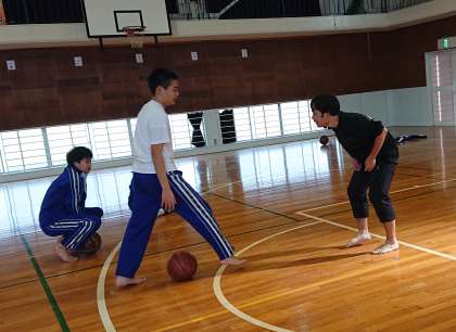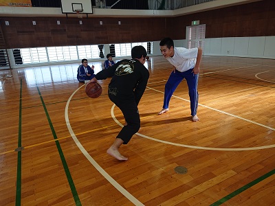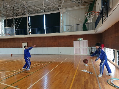 昼休みの様子です。体育館でバスケットボールを楽しんでいました。