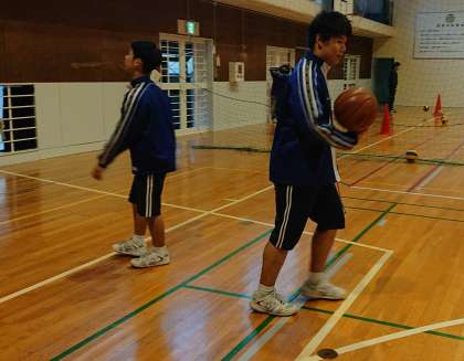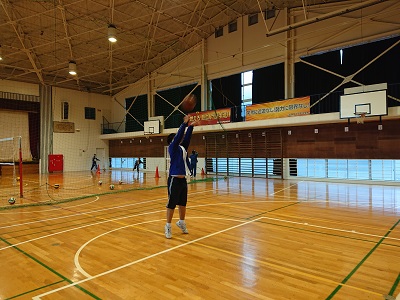 バスケットボール部の朝練習の様子です。シュート練習を集中して行っています。