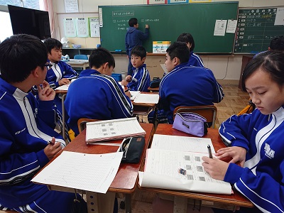 2年生は体育で長距離走を行っています。今日は、長距離走分析シートを使って、ラップタイムの計算などをしながら、自分の走りを分析しました。