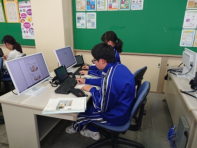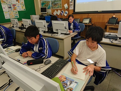 2年生は技術で「生産育成に関する技術」について学習を進めています。今日は、作物が良く育つ環境を調べるために、インターネットを使いながら学習を進めました。