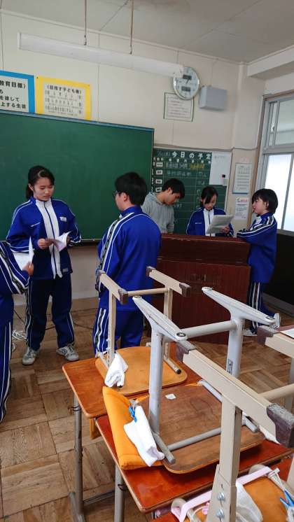 昼休みの様子です。2年の教室では、合唱練習をするしてなど、仲良く過ごしています。