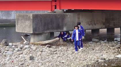 3年生は理科で「地球の明るい未来のために」という単元を学習しています。戸田にはどんな野鳥がいるのかを大川河口付近で観察を行いました。