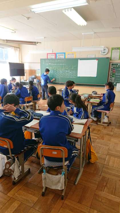 1年生は理科で「身近な物理現象」という単元を学習しています。昨日の「ばねの伸びから、ばねにかかる力」についての実験結果をまとめ、質量が変わるとばねの伸びはどうなるかを考察しました。