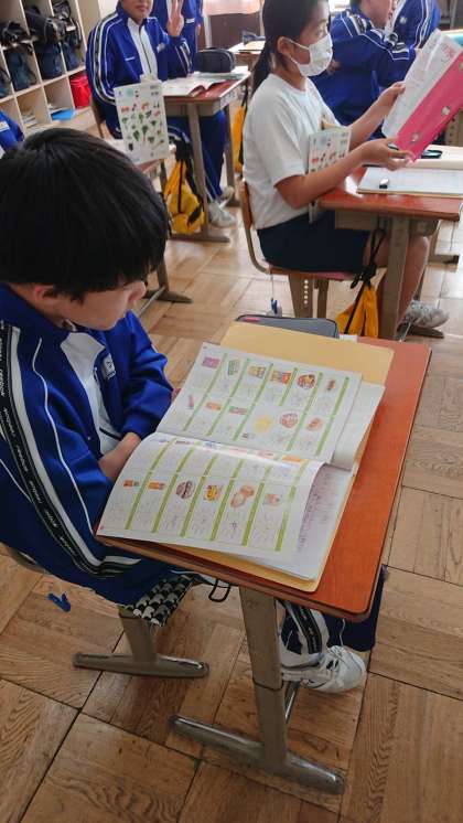 2年生は家庭科で、「食品の栄養バランス」というパンフレットを見ながら学習を進めました。