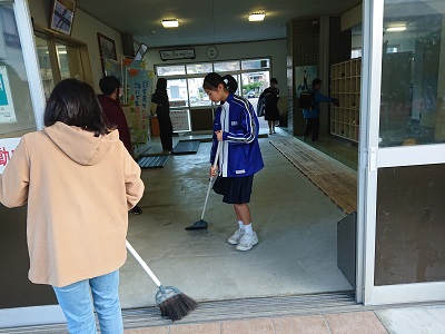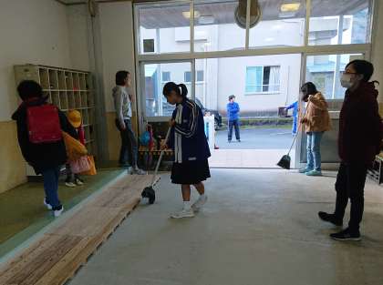 委員会活動の様子です。今日は小中の学習環境委員さんが玄関掃除を丁寧に行っています。いつもありがとうございます。