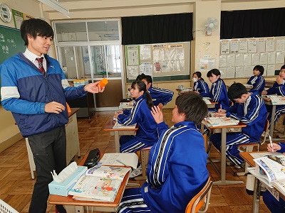 1年生は数学で空間図形について学習しています。三角柱、三角錐など、いろいろな立体の定義を確認しました。