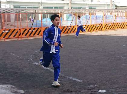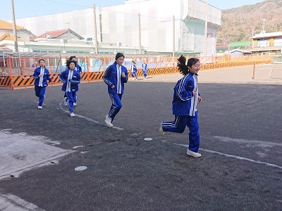 1年生は体育で持久走を行っていました。それぞれが目標を立てて一生懸命走りました。