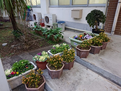 今朝の様子です。児童生徒玄関は、「戸田花の会」様からいただいたカランコエも入り、きれいに彩られています。