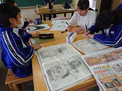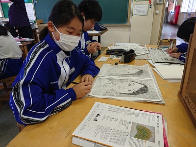 2年生は「刷って出会う美しさ」という単元を学習しています。版の特徴を表現に生かしながら制作活動を行いました。