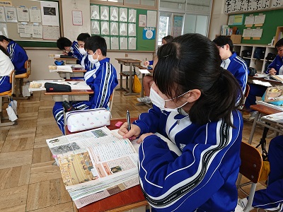 2年生は社会で「江戸幕府の滅亡」について学習しました。大政奉還の前後にはどのような出来事があったのかを教科書や資料集を読み取り、自分の意見をまとめました。
