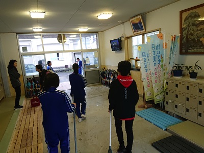 委員会活動の様子です。今日は小中の学習環境委員さんが玄関掃除を丁寧に行っています。いつもありがとうございます。