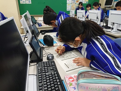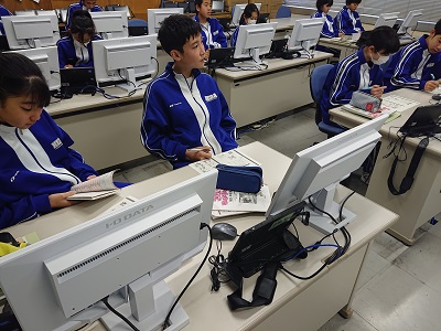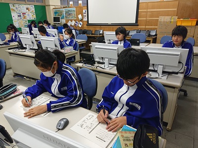 1年生は英語の学習において、既習事項の確認としてリスニング問題に取り組んでいました。