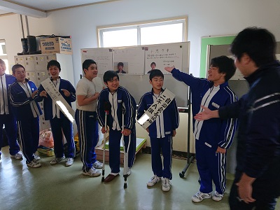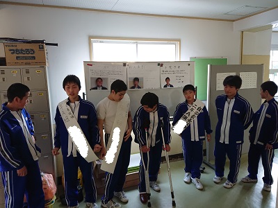 今日から自治会(生徒会)役員選挙運動がスタートしました。役員選挙に立候補した生徒と責任者が昇降口で生徒に協力を呼びかけました。