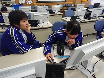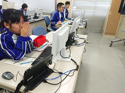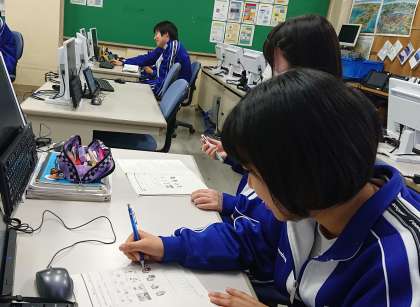 3年生は、来週に迫った公立高校入試に向け、リスニング問題を行い、長文の際、どのように聞き取るかを確認していました。また、終了後は英語のCM作りを行いました。