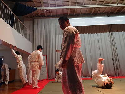 2年生は体育で柔道を行っています。受け身の練習を入念に行っていました。