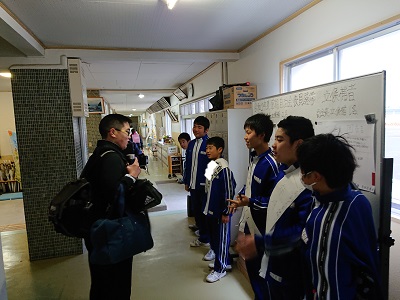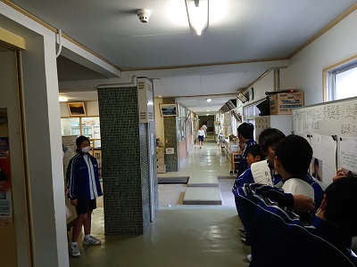 昨日から自治会(生徒会)役員選挙運動が始まっています。役員選挙に立候補した生徒と責任者が昇降口で生徒に協力を呼びかけました。
