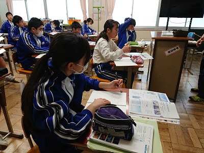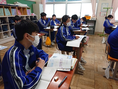 2年生は理科で天気図について学習しています。大気の動き方について話し合いました。