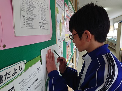 1年生は美術でモダンテクニックという教材を学習しています。フロッタージュ(こすり出し)技法で、凹凸のあるものに紙をあて、鉛筆でこすり形を写しだしました。