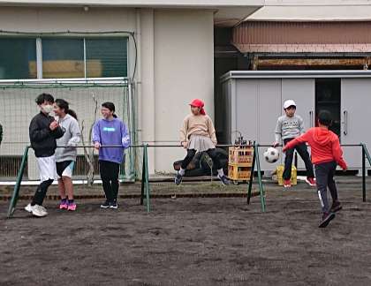 昼休みの様子です。小学生もグラウンドを共有して楽しんでいます。