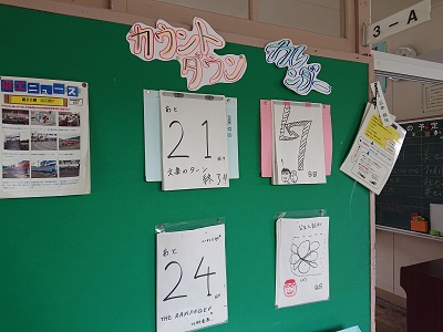3年生教室壁にカウントダウンカレンダーが掲示されています。
