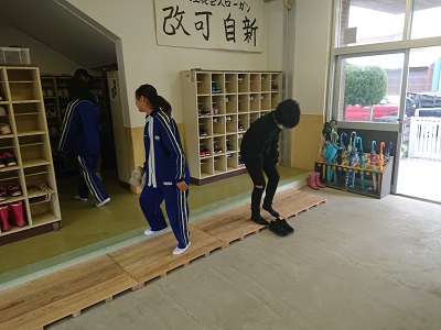 委員会活動の様子です。今日は小中の学習環境委員さんが玄関掃除を丁寧に行っていました。清掃活動が終わったところでした。いつもありがとうございます。