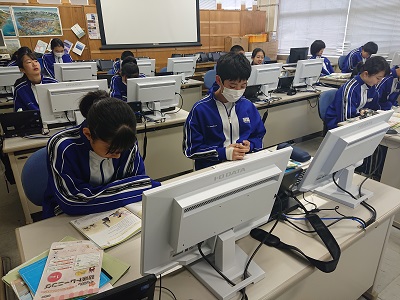 1年生は英語で「PROGRAM 11 Grandma Baba and Her Friends on a Sleigh」を学習しています。今日は、英文を読み込んだ後、役になり切ってスピーチしあいました。