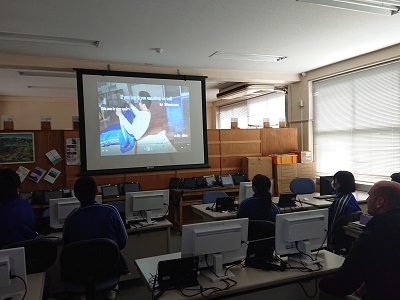 3年生は言語科「英語の時間」において、これまで準備してきた英語コマーシャルをアーロン先生に見ていただきました。アーロン先生は、「どのグループも素晴らしい」と褒めていました。