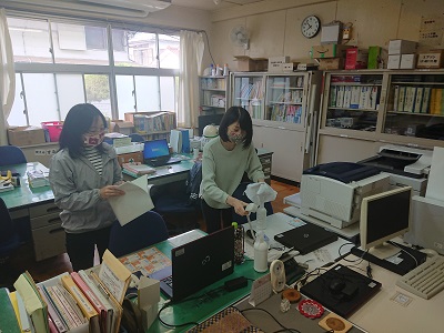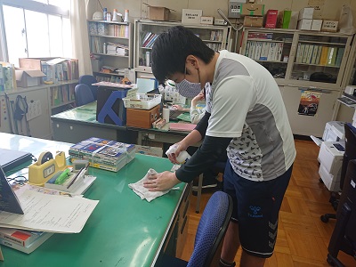 受話器・マウス・机等、いろいろな人が使う物は、日々消毒をしています。