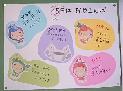 毎月15日は「おやこんぼチャレンジ」の日です。今年度も、メディアとの上手な付き合い方を考える機会として学校と家庭で一緒に取り組んでいただけたらと思います。
