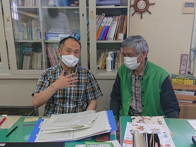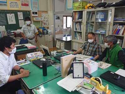 新しいALTグレッグ先生が来校し、英語学習の準備をしました。今日は、フィリピンと日本の違いを居合わせた教職員と英語で会話しました。