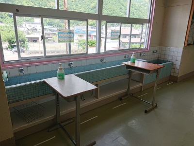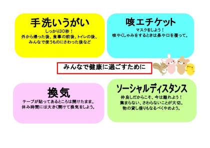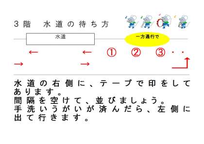 2 教室に入る前に、3階トイレ前水道で手洗いうがいをしてください。