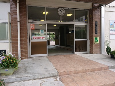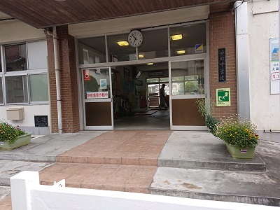 本日は臨時登校日です。用務員さんが朝早くから玄関付近を掃除して、子どもたちを迎える準備をしていました。