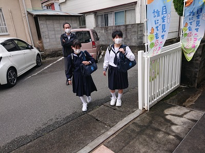 みんなが元気に登校しました。1年生は真新しい制服に身を包み、夢や希望をもって登校してきました。