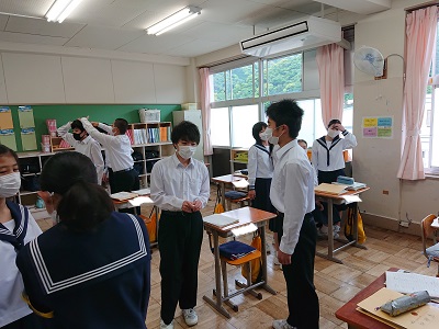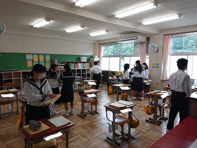 2年生は学校休業中に取り組んだ課題を友達と確認していました。