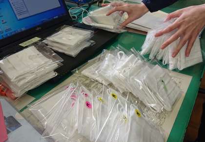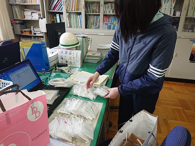 養護教諭が配付マスクの準備をしました。このマスクは戸田中応援団の方からいただいたものです。誠にありがとうございます。