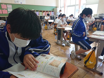 3年生は社会で「江戸幕府の対外政策」について学習しています。教科書や資料集を読みながら、気づいたことをノートにまとめました。