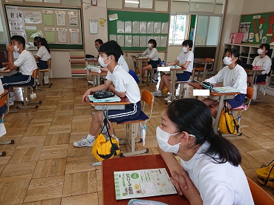 2年生は英語で「Program1-1」の学習を行っていました。元女子プロサッカー選手を題材に、一般動詞と不規則動詞の過去形について確認をしました。